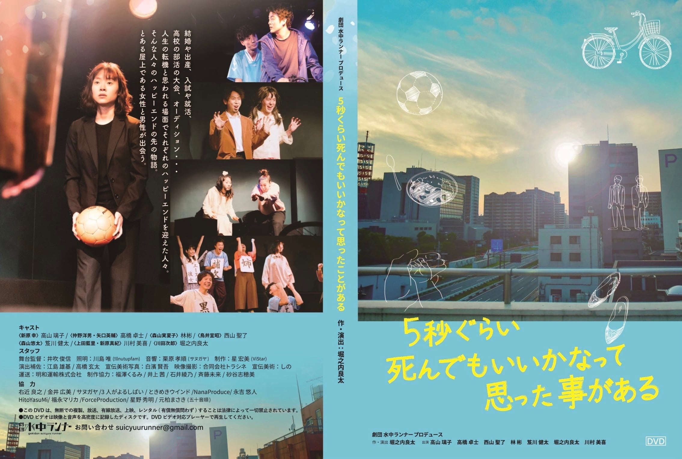 劇団 水中ランナープロデュース公演「5秒ぐらい死んでもいいかなって思った事がある」上演DVD。